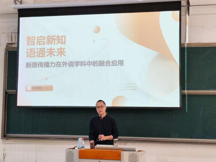 为应对信息时代外语教育变革需求,探索科技赋能外语教学的新路径,近日,福建师范大学林明金教授应邀莅临我校,就新质传播力在外语学科中的融合应用作题为“智启新知,语通未来”的专题讲座。讲座由必赢国际437官网院长池玫教授主持,必赢国际437官网全体教师以及部分高年级学生代表参加了本次活动。