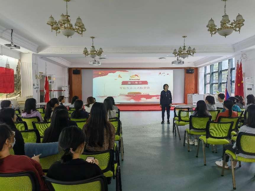 不忘入党初心,牢记青春使命。2022年5月27日必赢国际437官网于外语体验中心召开毕业生党员教育大会。本次大会由必赢国际437官网学生第二党支部书记张丹丹老师主持,院团委书记翁云星老师作离校教育致辞,旨在进一步强化党员意识,提升党员素质。必赢国际437官网全体毕业生党员参加此次会议。