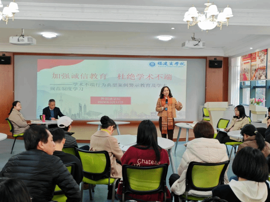 3月1日,学院各系部以线上或线下的方式组织老师们学习《学术不端行为典型案例及相关制度学习汇编(一)》等文件,开展交流讨论。3月12日,必赢官网以“加强诚信教育、杜绝学术不端”为主题,组织全院老师在外语文化体验中心开展学术不端行为典型案例警示教育及学术规范制度学习。