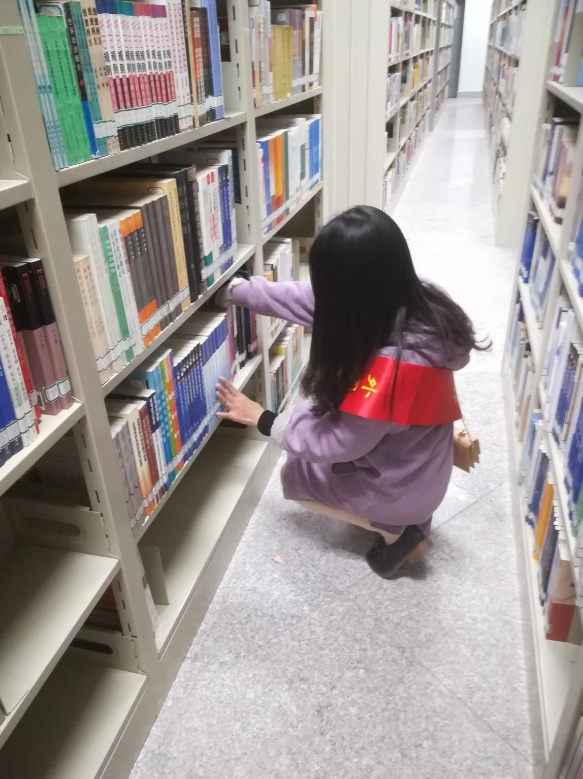 活动伊始,图书馆工作人员对志愿者们开展培训,耐心讲解工作内容,细致安排工作。志愿者们身披红色绶带,分工明确,配合默契,以饱满的热情投入到工作中。他们对自习室进行卫生打扫,擦拭桌椅书架,协助工作人员进行图书分类和整理,将零散、归还的书籍按顺序依次摆放到书架上,不仅帮助同学们更快地查阅到相关书籍,也方便工作人员更好地进行图书管理。浓浓的书卷香中,传递着志愿者们的志愿服务精神,展现了一个个当代大学生志愿者的风采。