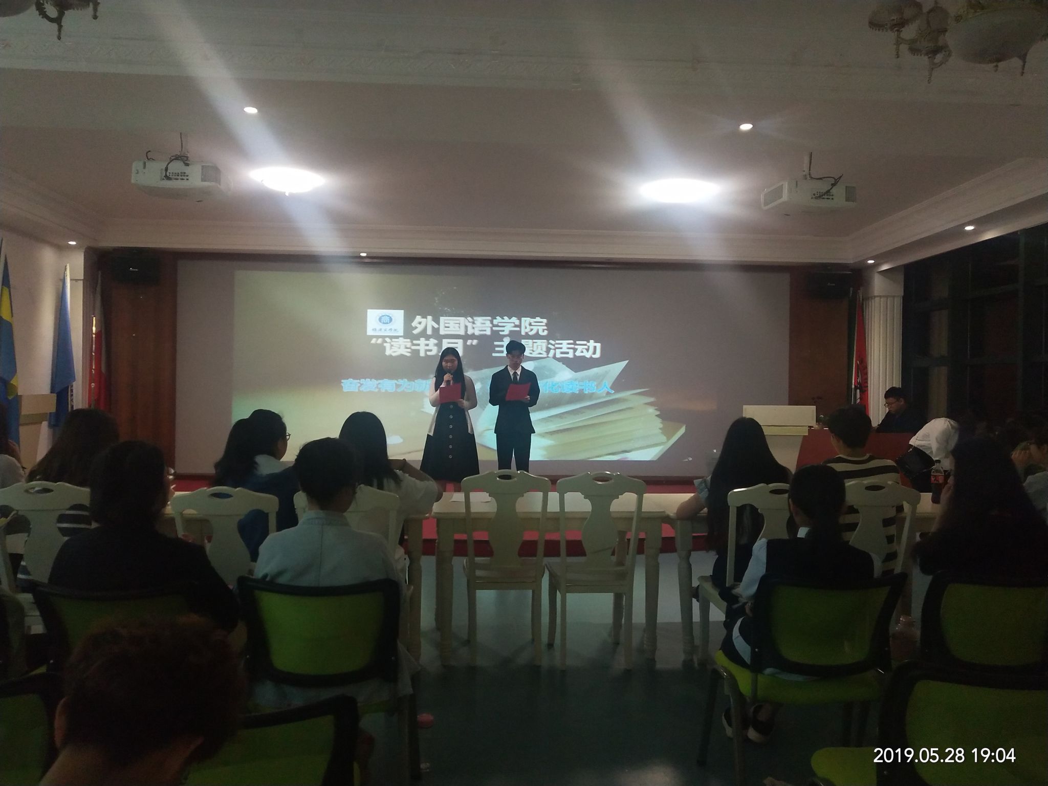 为进一步营造读书好、好读书、读好书的良好氛围,激发学生读书热情,2019年5月28日,必赢国际437官网于外语体验中心举办“奋发有为新青年 传承文化读书人”读书月活动。本次活动面向学院全体学生。