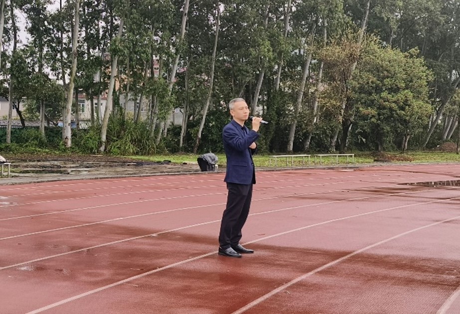 习近平总书记指出,“对新时代中国青年来说,热爱祖国是立身之本、成才之基。”举行升旗仪式是学校对学生开展爱国主义教育的重要手段,是增强学校凝聚力、向心力和感召力,从而提高师生民族自豪感和责任感的有机载体。当国旗护卫队缓缓升起鲜艳的五星红旗时,全体师生肃立致敬、高唱国歌,表达对伟大祖国最深沉的敬意和热爱。礼毕,郭文静同学代表学生发言,新时代青年生在国旗下,长在春风里,应胸怀祖国,志存高远,做维护国家安全的坚定捍卫者。