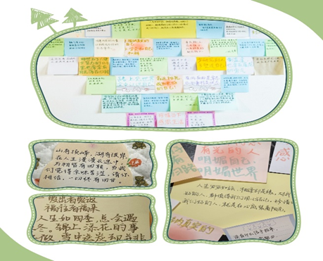情绪像浪潮,而对手是我们自己。敲开束缚自己的枷锁,书写自己的心声。心灵寄语环节中,有的同学鼓励朋友勇敢面对困难,有的同学勉励自己快乐生活,有的同学祝福集体愈发向上。这些心灵寄语如同一道道温暖的阳光,照亮了我们的心灵之路,让我们在成长的道路上更加坚定和自信。