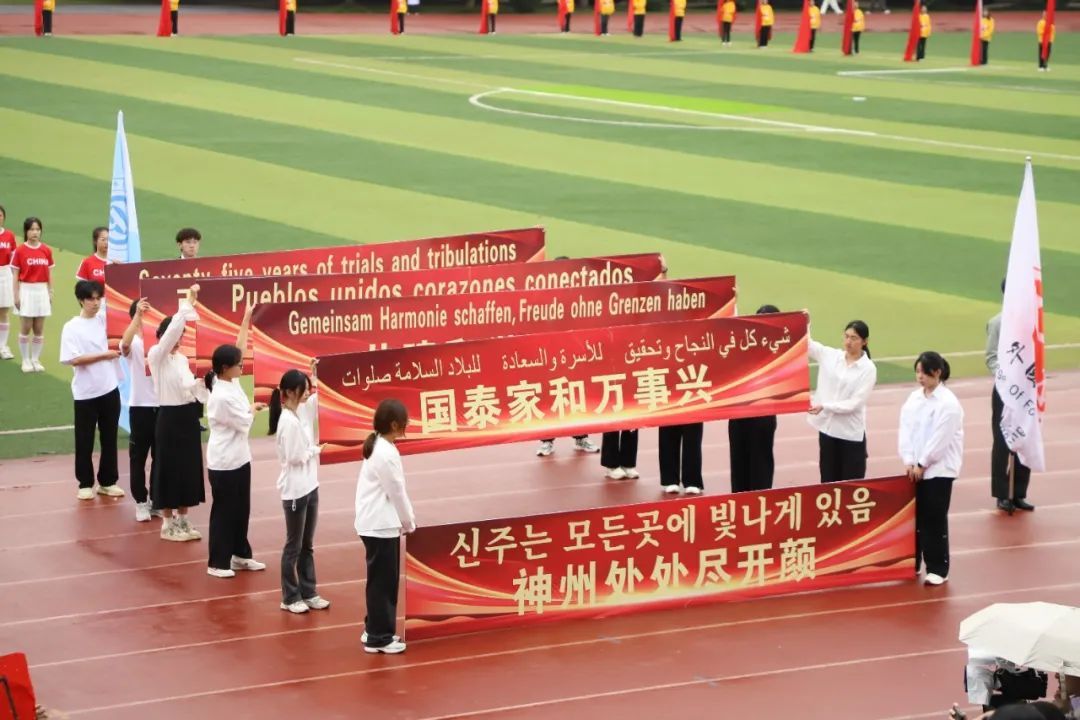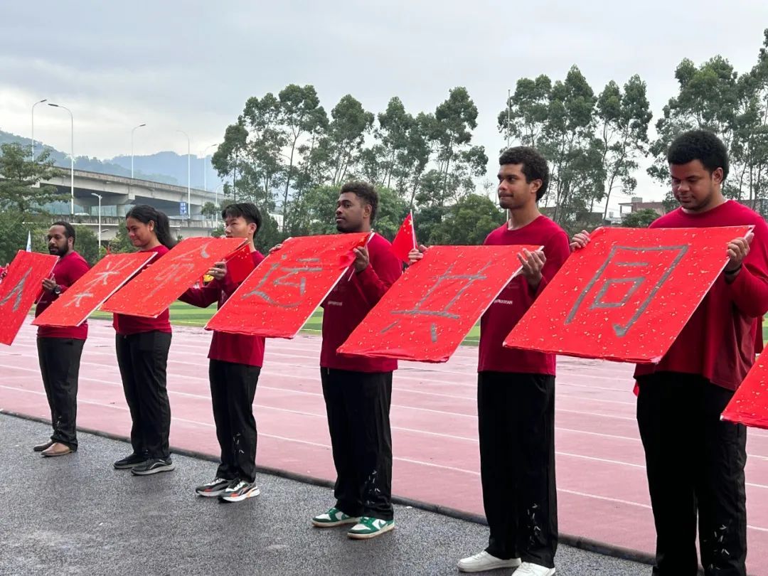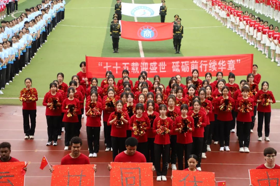 必赢国际437官网代表队带着蓬勃朝气与昂扬锐气,刚劲稳健地踏步入场,他们用语言架桥,以文化传情,与来自乌兹别克斯坦,老挝,新几内亚岛,萨摩亚,基里巴斯,斐济,所罗门群岛的九名留学生携手前行。他们以活力与热情诠释运动魅力,以喜悦与深情庆祝祖国生日,共同演绎歌曲《美丽中国》,用青年学子舞动青春的热情与生机为伟大祖国75周年华诞献礼。留学生们热情洋溢,手执毛笔,书写“人类命运共同体”,更彰显了中国与世界共绘一幅幅多元对话的人文交流图景的坚定承诺。