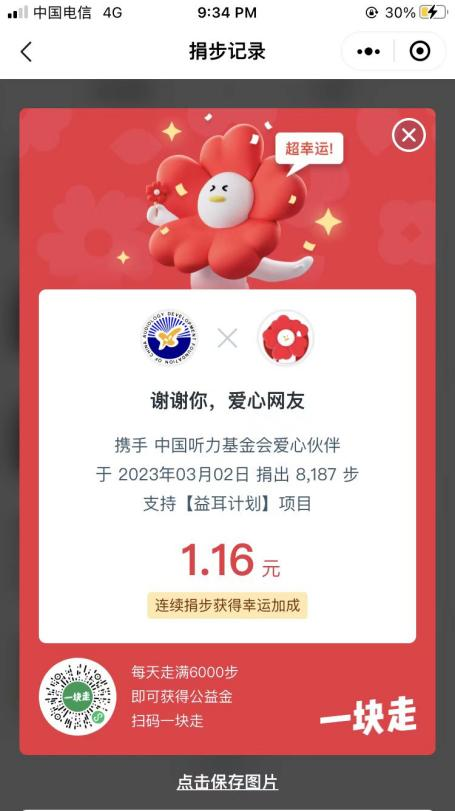 同学们通过微信“一块走”小程序,加入公益行走路线,参与本次打卡捐步活动。在活动期间内,每人每日步数至少达到8000步,并捐赠步数,将其转化为公益金在平台上向相关公益项目进行捐款。活动得到了强烈响应,同学们纷纷踊跃参与,并用自己的实际行动呼吁身边的人加入到这个行列中来,为公益活动奉献青春力量,为需要的人送去温暖和希望。